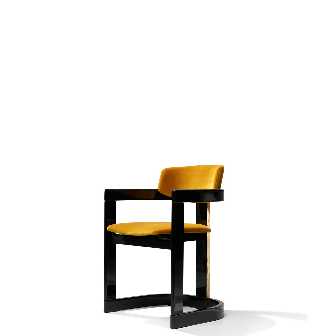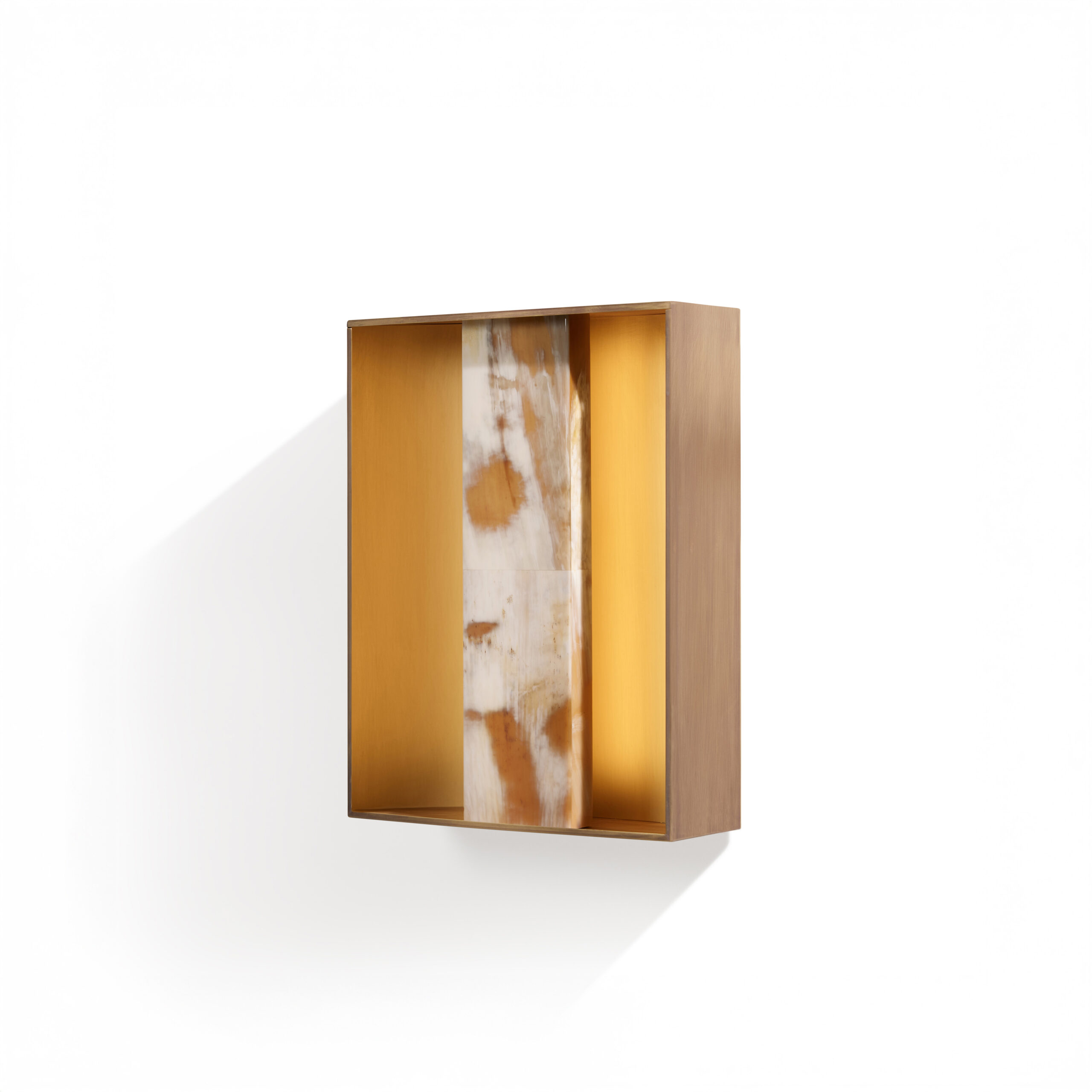 The Caleido collection includes new transversal pieces ranging from furniture to accessories. Horn acquires new shapes inspired by the nautical world and it’s matched with ebony veneers, pebbled leathers with handmade saddle stitches, soft fabrics and vivid colour lacquers.