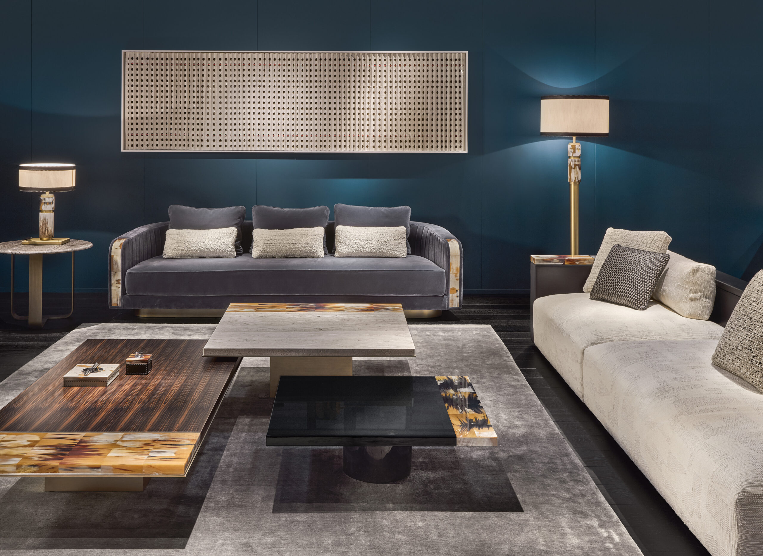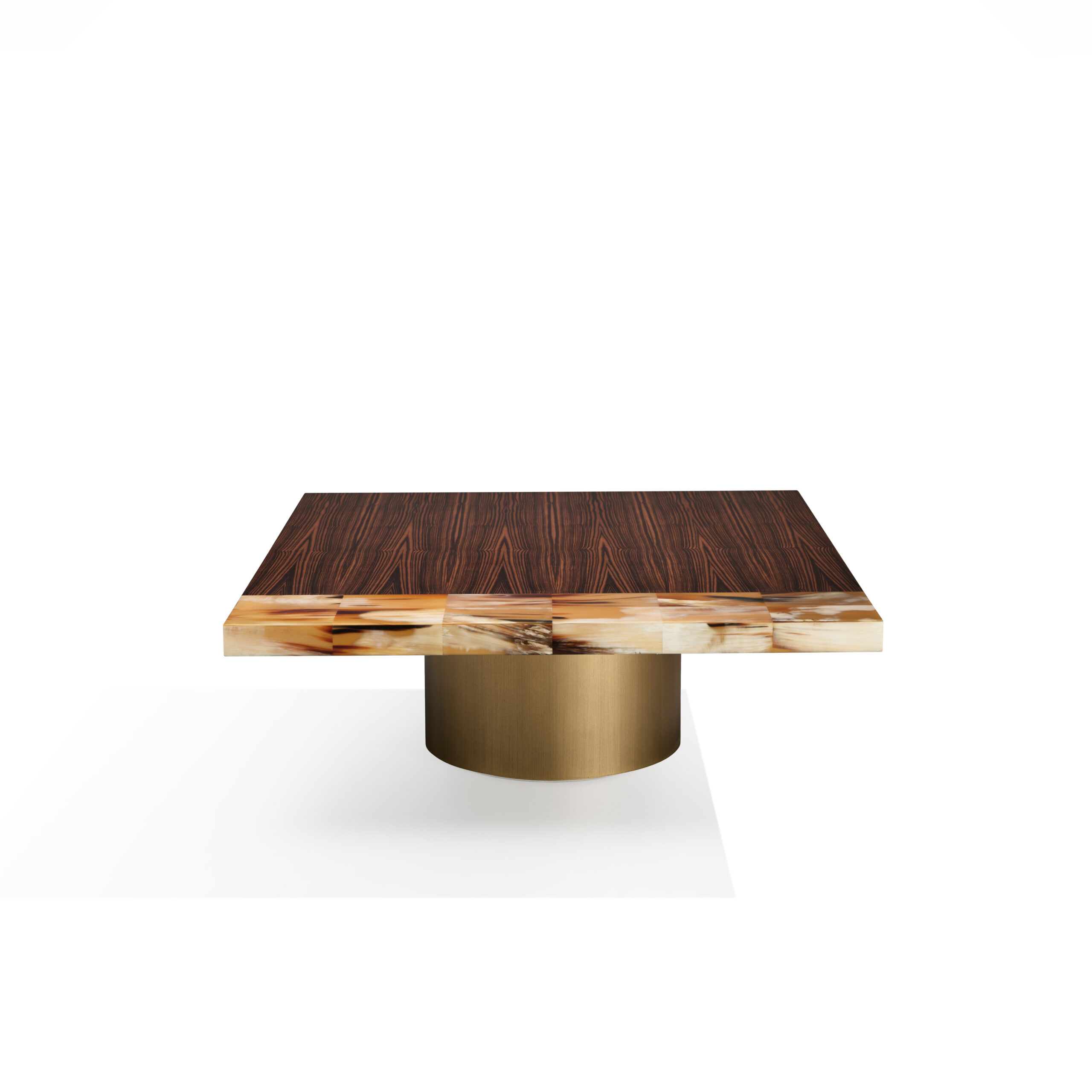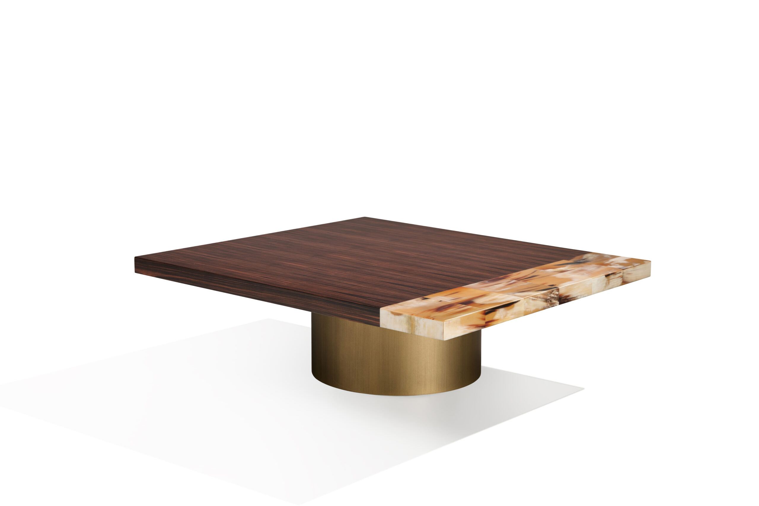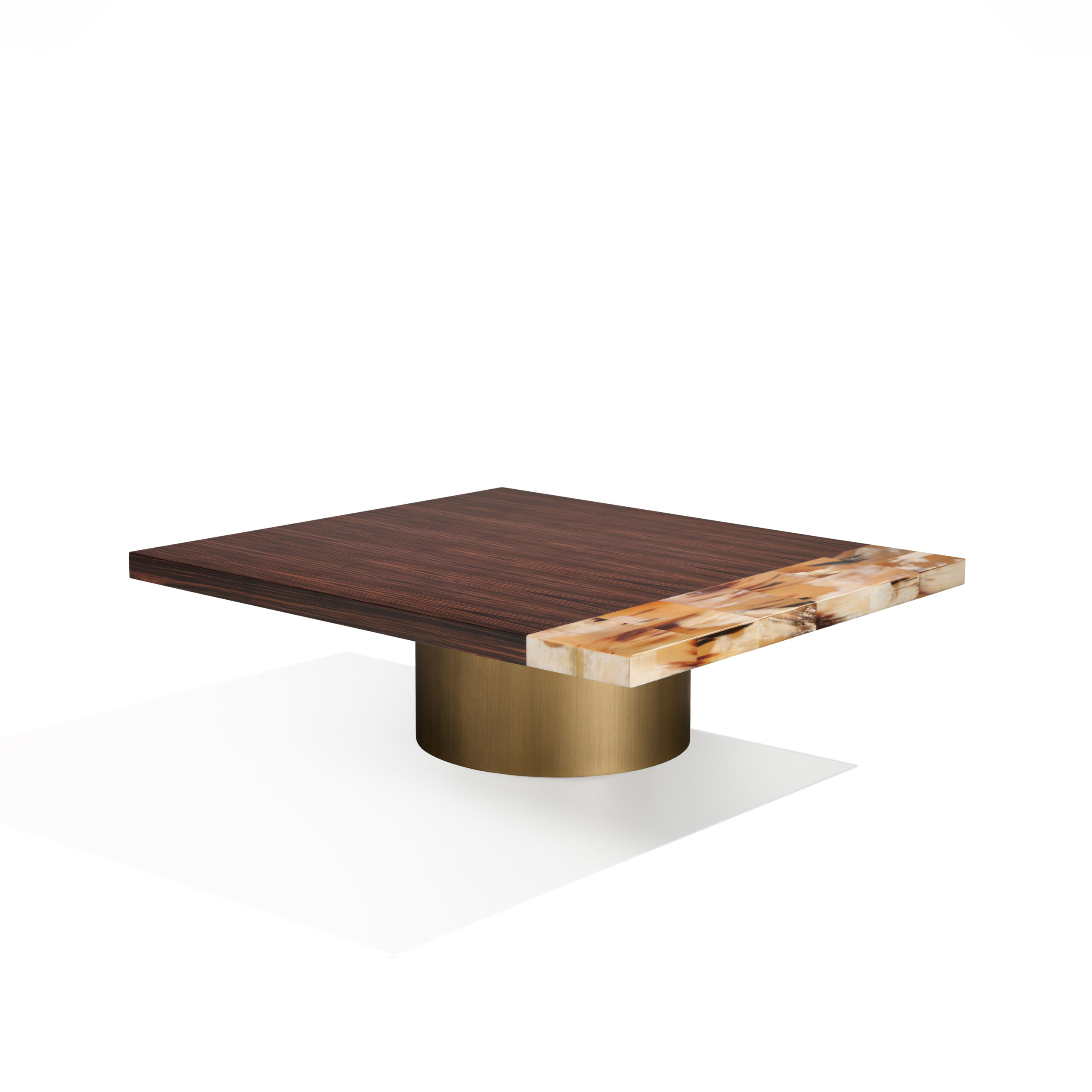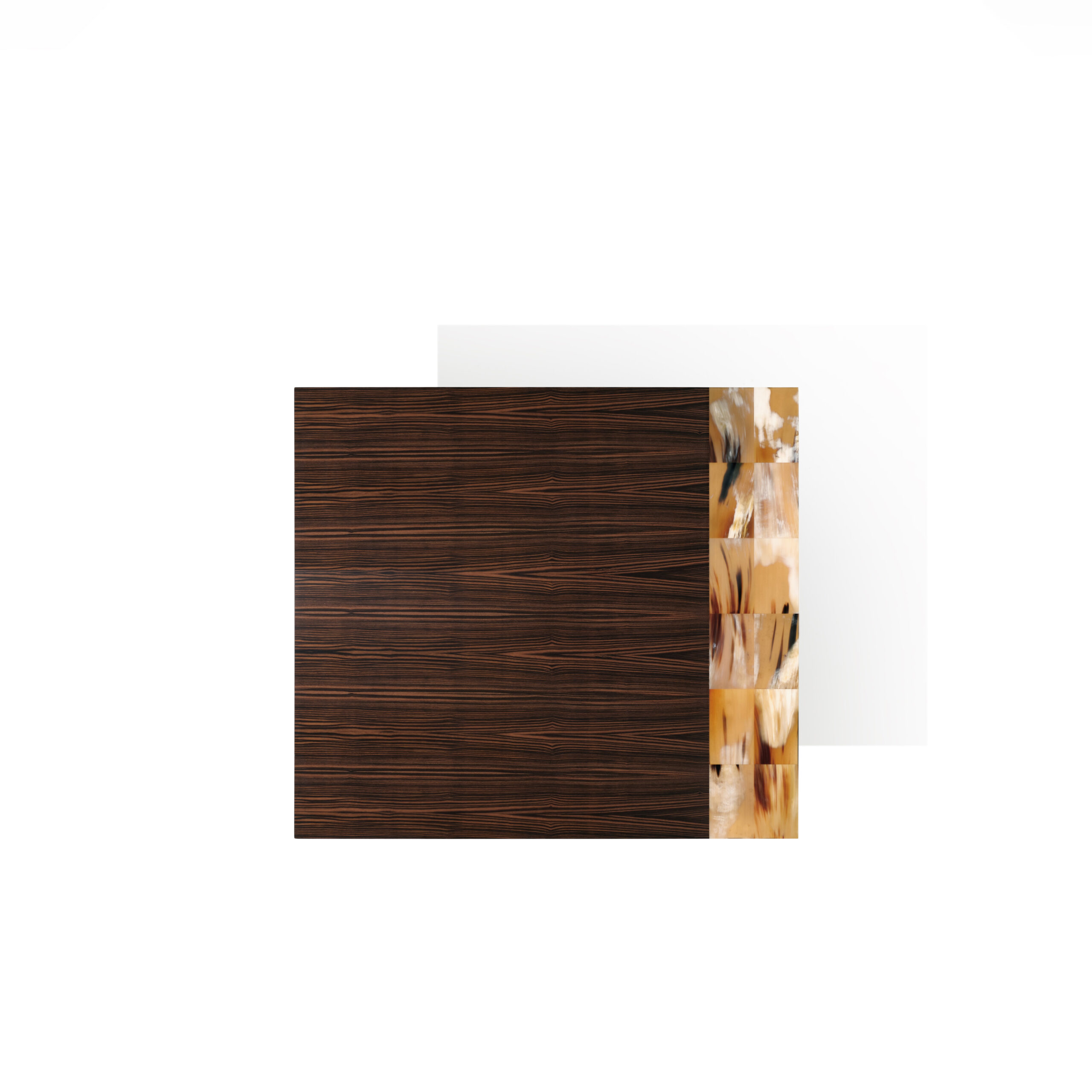 The Andria side table is a statement piece, distinguished by exceptional materials and craftsmanship. The rectangular top, made from a striking combination of horn and Makassar ebony, exudes a unique character thanks to the intricate grain patterns and warm tones. The matte finish subtly enhances the natural beauty of wood and horn, providing an elegant and contemporary aesthetic.