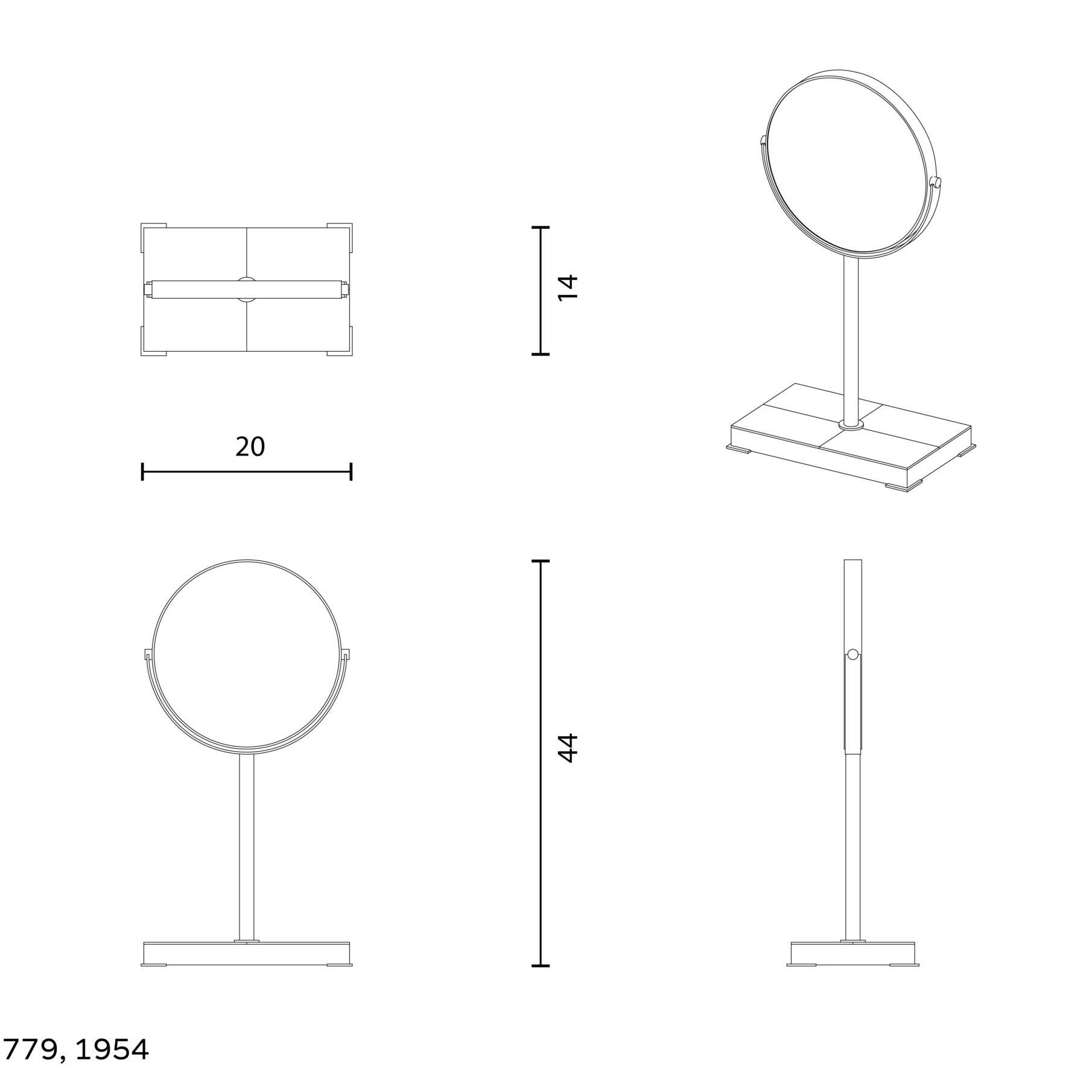 Two sided magnifying make-up mirror with stand in chromed brass. Base in horn and glossy ebony.