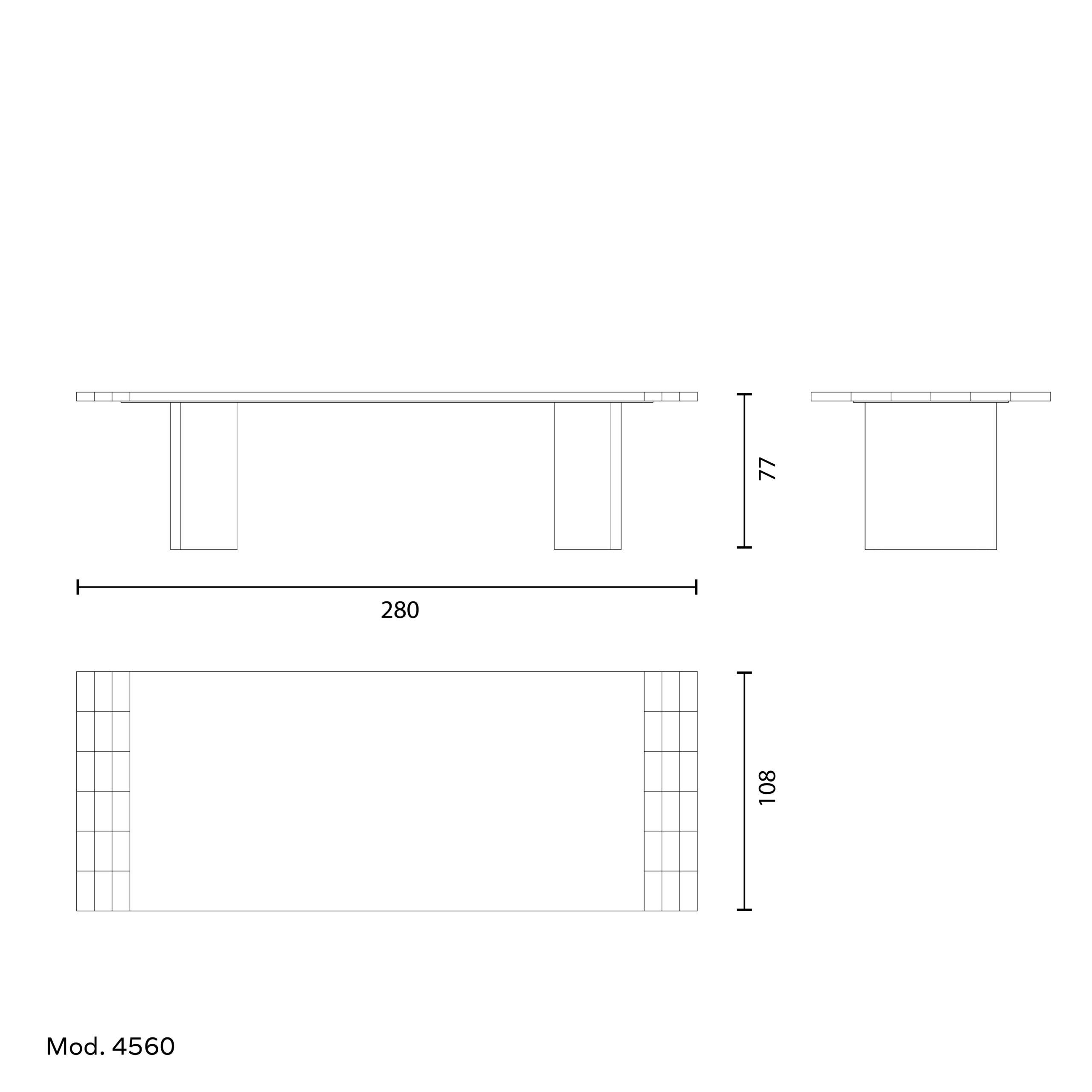 Two rounded legs in matte Amara ebony are distinguished by a sophisticated interplay of solid forms and voids, that serves as a distinctive stylistic hallmark while ensuring both robustness and stability. Meticulously crafted in every detail, Tecla exemplifies artisanal excellence, making it a functional piece of furniture and a striking visual centerpiece for any dining area.